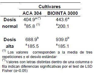 Los niveles de residuos cuantificados en la presente investigación se encuentran por encima de estos valores para las dosis normal y alta para ambos cultivares (Fig. 3).