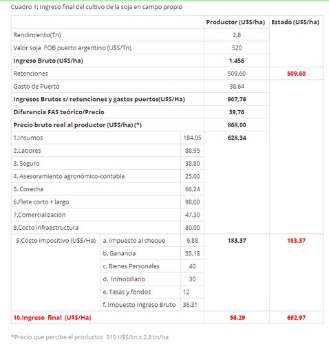 Al productor, que es quien invierte y arriesga, le quedará tan solo mil millones de dólares de los casi 28,4 mil millones de dólares que originará el cultivo de soja