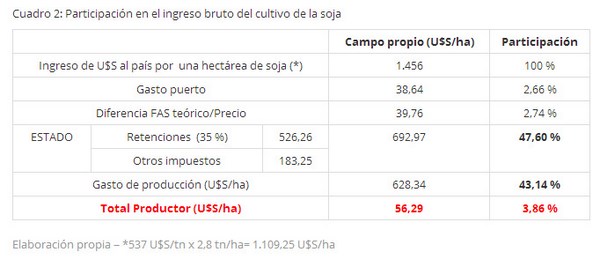 Cuadro 2: Participación en el ingreso bruto del cultivo de la soja