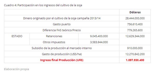 Cuadro 4: Participación en los ingresos del cultivo de la soja