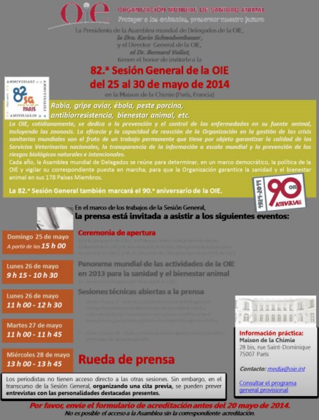 Del 25 al 30 de mayo la Organización Mundial de Sanidad Animal (OIE) rezalizará la 82 Sesión General de la OIE en la Maison de la Chimie (Paris, Francia)