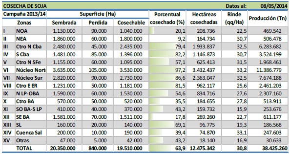 Al inicio del período de cosecha las expectativas productivas en las regiones recién mencionadas se encontraban muy por debajo de los resultados que hoy se relevan. El importante volumen de producción que se prevé aporten al cierre de esta campaña, no sólo compensa la significativa pérdida de superficie relevada, sino que también obliga a elevar nuestra proyección de producción a 55.500.000 toneladas (+1,8 % vs. anterior publicación). De concretarse esta cifra estaríamos frente a un nuevo récord de producción nacional, dado que superaría las 55 MTn recolectadas durante la campaña 2009/10.
