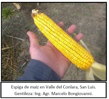 Hacia el sur de Córdoba el grueso de los cuadros de fechas tardías ya transitan estadíos que van desde grano duro (R5) a madurez fisiológica (R6), esperando en muchos casos que pierdan humedad en el grano para comenzar con la trilla. Durante el mes de marzo, hacia el oeste de esta zona se registraron algunas heladas que pueden haber cortado el llenado de los granos, afectando así el peso de 1.000 granos, de manera que podría verse afectado el rendimiento potencial de estos maíces.