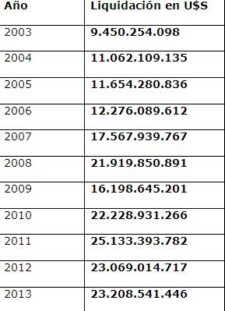La liquidación de divisas de las empresas del sector en los últimos años fue: