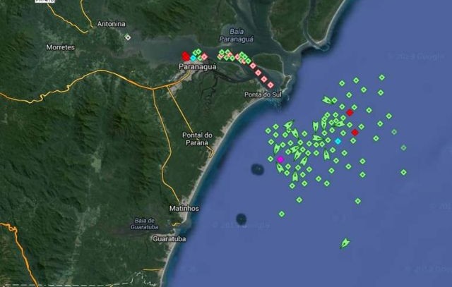 El primer importador mundial de beens poco se interesó en las recientes mejoras logísticas de los cariocas, ni tampoco en la caída de los inventarios portuarios de maíz de este año que le darían más oxigeno sin lugar a dudas a la salida de la soja brasileña, como finalmente vimos en marzo y abril pasados. Pero los chinos dudaron este año, y solo tuvieron inscripto en sus retinas la fila de buques en rada (foto satelital tomada en septiembre 2013) esperando que Paranaguá (y por supuesto Santos) aceleraran el loading.