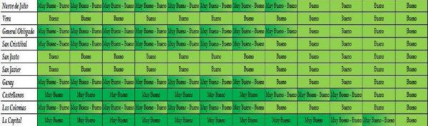 La condición manifestada en los informes anteriores, en la cual el departamento Castellanos (centro oeste), el departamento Las Colonias (los distritos del norte, oeste – centro y este del mismo), el departamento La Capital (distritos del norte, oeste y centro), el departamento San Justo (distritos del oeste, centro, sur y este), el departamento San Cristóbal (distritos del oeste, centro, sur y este), se mantiene y el leve cambio experimentado, con disminución del agua en la superficie de los suelos, menores encharcamientos y anegamientos; no está manifestando la recuperación esperada con el transcurso de los días, lo cual refleja el impacto de este período húmedo en toda el área.