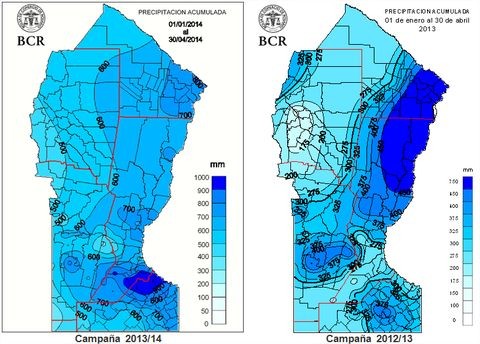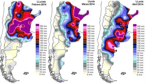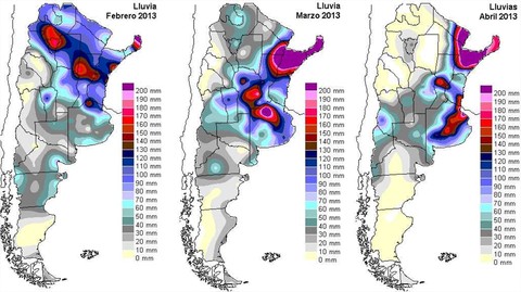 Febrero, marzo y abril registraron un excesivo nivel de lluvias, con fuertes tormentas, particularmente en la franja central donde se verifica el mayor nivel de hectareaje con anegamientos. El contraste con la campaña anterior es notorio y queda reflejado en los totales mensuales. Esta vez, el NOA recibió lluvias muy importantes, con frecuencia semanal en algunas zonas, que posibilitaron que los cultivos crezcan sin limitantes hídricas. Las imágenes, aportadas por la Consultora de Climatología Aplicada (CCA) ilustran con claridad la amplia diferencia del comportamiento pluvial de este trimestre con el del año pasado.