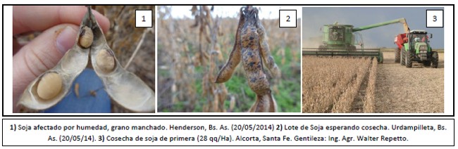 Es importante aclarar que si bien el riesgo de pérdida de rinde por desgrane de vainas se encuentra latente, para que esta merma sea significativa el cultivo tendría que perder humedad y secarse forma abrupta, algo poco probable para esta época del año. Por otra parte, muchos productores no esperan a que los cuadros se sequen hasta alcanzar el valor estándar de humedad comercial (13,5 %), sino que prefieren afrontar el costo del secado y avanzan con la recolección ni bien pueden entrar a los lotes. Cosechar cuadros que aún mantienen humedad entre 15-20 % disminuye el riesgo de pérdida de rinde por apertura de vainas, pero incrementa las pérdidas de cosecha y en consecuencia se termina afectando el rinde final de los cuadros.