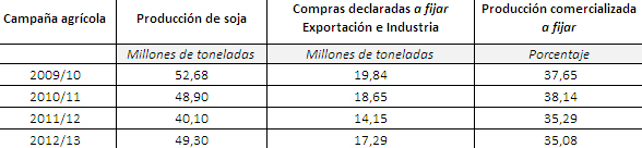Cuadro 1. Participación de la modalidad a fijar en el total comprado de soja