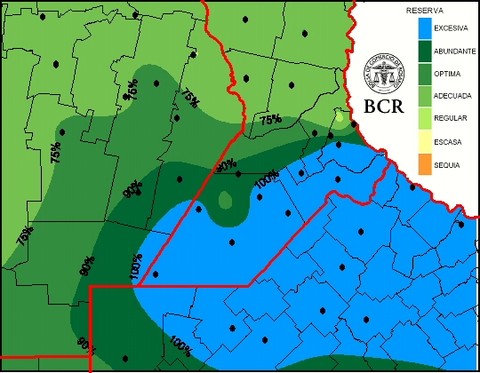Es alto el riesgo de no poder concretarse la siembra de ciclos largo de trigo, con la posible llegada de lluvias para el próximo viernes. Se puede advertir la magnitud del fenómeno por la imagen de reservas hídricas; donde las reservas marcan un 90%, están claramente postergadas las labores de implantación.