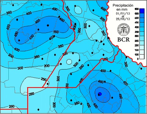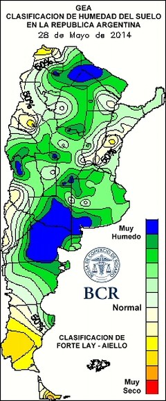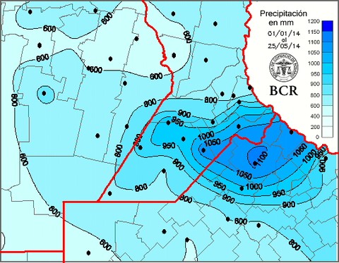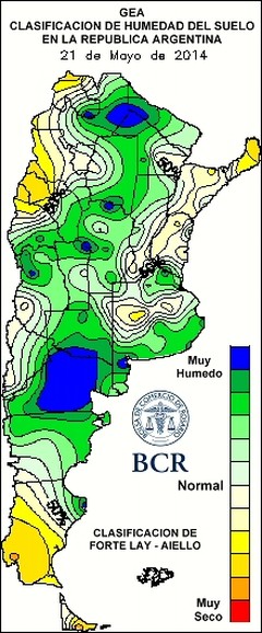 En lo que va del año 2014, Ramallo registró 1125 mm, Labordeboy 1060 mm, Santa Teresa 1050 mm y Pergamino 1010 mm. El año pasado no superaban los 400 mm. Los excesos siguen afectando a buena parte de la región núcleo: falta de piso, lotes anegados de la presente campaña, e intransitables que repiten fotos con camiones “encajados” en el barro. Todo ello mantiene en suspenso los planes de siembra de trigo. Las zonas más críticas son el noreste bonaerense y su frontera con la provincia de Santa Fe. Allí la superficie de soja que no pudo recolectarse es muy probable que se eche a perder.