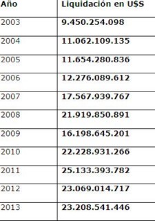 La liquidación de divisas de las empresas del sector en los últimos años fue: