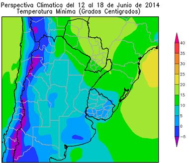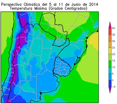 Hacia finales de la segunda etapa de la perspectiva, los vientos del sector sur establecerán su dominio sobre gran parte del área agrícola, provocando un marcado descenso de la temperatura, con riesgo de heladas en todo el oeste y el sudeste de su extensión. La mayor parte del Paraguay y el norte de Misiones, registrarán temperaturas mínimas superiores a 15°C.