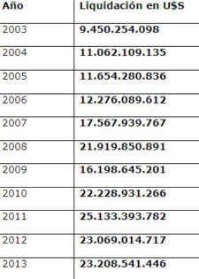 La liquidación de divisas de las empresas del sector en los últimos años fue: