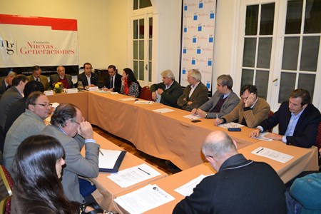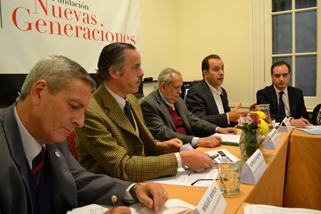 (De izq. a der.): Expositores y asistentes al seminario en la Fundación Nuevas Generaciones.
