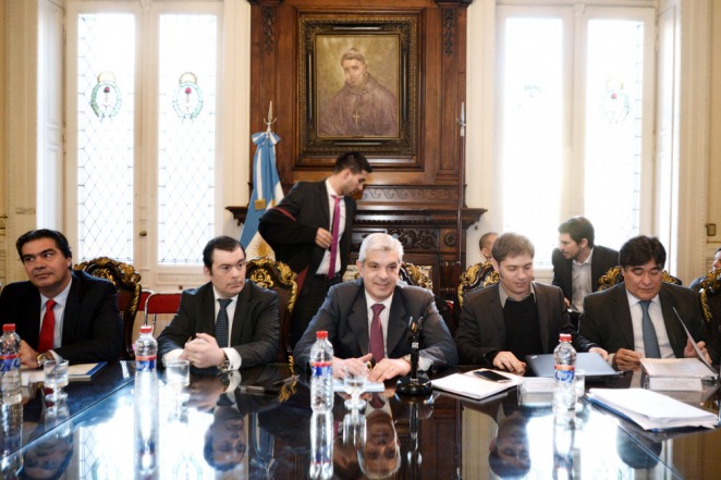 El jefe de Gabinete, Jorge Capitanich, estuvo este martes 17 de junio con los presidentes de la mayoría de los bloques parlamentarios junto al ministro de Economía, Axel Kicillof y el secretario Legal y Técnico, Carlos Zannini, para para dar a conocer los alcances del nuevo canje de deuda.