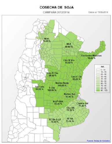 Frente al escenario recién descripto, mantenemos nuestra actual proyección en 25.000.000 toneladas. Esto sería un -7,4 % por debajo de lo producido la pasada campaña (2012/13: 27 MTn).