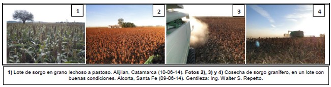 En el NOA se vienen recolectando los primeros cuadros; en esta región, el cultivo se encuentra limitado a sub-zonas de menor aptitud agrícola, dependiendo del tipo de suelo y del régimen pluviométrico. Se pueden ver lotes de sorgo pendientes de cosecha en la localidad de Pozo Hondo (Santiago del Estero), o en las localidades de Embarcación y Rosario de la Frontera (Salta).