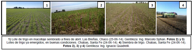 En las regiones NOA y NEA la implantación finalizaría durante los próximos días, dado que la ventana óptima de siembra culminó, pero aprovechado la buena humedad del perfil los productores continúan incorporando cuadros sobre rastrojo de soja liberados en los últimos días. Los lotes implantados ya se aprecian desde plena emergencia hasta macollaje, en muy buenas condiciones y con un óptimo stand de plantas.
