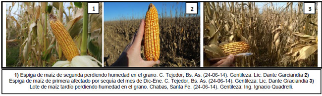 Aún resta recolectar un porcentaje de lotes de siembras tempranas (22 %) en la zona del NOA y en la provincia de Buenos Aires. El resto del área que permanece aún en pie se asocia a lotes de siembras tardías o de segunda ocupación. Esta superficie transita estadíos de madurez fisiológica, perdiendo humedad en el grano. Se espera que para los próximos diez días, clima favorable mediante, se comience a recolectar el grueso de los cuadros que hoy presentan un rango de 15 a 18 % de humedad.