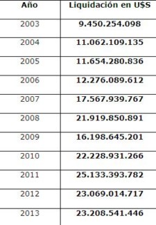 La liquidación de divisas de las empresas del sector en los últimos años fue: