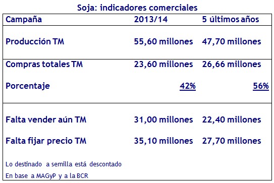 Es cierto que el cuadro muestra un volumen de producción superior a 50 millones de toneladas. Y es posible que no se logre superar tal número, al menos de forma sustancial. Pero, suponiendo que ello sea así, tendríamos que casi un 60 % de la cosecha aún no se ha comercializado.