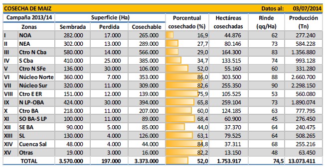Las buenas productividades obtenidas en los maíces tardíos o de segunda ocupación, a pesar de los sucesos climáticos registrados durante esta campaña, refuerzan nuestra proyección de producción para el cierre de campaña en 25.000.000 toneladas.