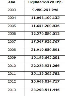 La liquidación de divisas de las empresas del sector en los últimos años fue: