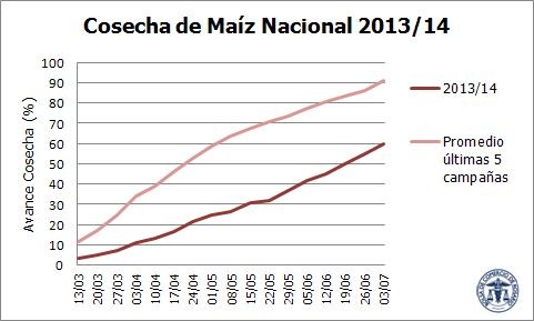 En soja y maíz el progreso de la cosecha confirma las expectativas de las estimaciones que señalan una producción de soja de 55,7 M de tn y en maíz de 24,5 M de Tn. El avance de la cosecha en soja es de 97% en soja. Pero en maíz sigue siendo muy importante el retraso. Respecto a esta misma altura del año pasado la cosecha está un 30% por debajo, con progreso actual de un 63% del total nacional.