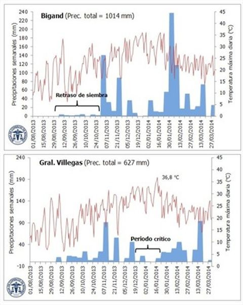 La ola de calor arrebató al maíz de primera cuando estaba inmerso en su etapa crítica, resultando el cultivo más afectado por el evento de la campaña 2013/2014. El año 2013 culminó con 200 mm menos del milimetraje histórico y marcas térmicas extremadamente elevadas 38° a 40° C de máxima, que desecaron los perfiles.