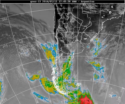 A partir de finales de la tarde y en la noche del lunes 14/7, un frente frío complicara aun mas las condiciones sobre la región pampeana pudiendo provocar la formación de lluvias y tormentas.