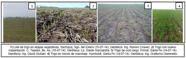 Hoy por hoy se puede ver el grueso de los cuadros en el NOA en pleno macollaje y en excelentes condiciones de cultivo. Hacia el NEA, las condiciones son similares. En la provincia de Córdoba, la disponibilidad de humedad es adecuada, lo cual favorece las tareas de cobertura. Los lotes ya emergidos se encuentran expandiendo las primeras hojas, y los más adelantados, iniciando la fase de macollaje. En La Pampa también se reportaron buenos nacimientos luego de varias semanas en donde la siembra avanzó con gran fluidez.