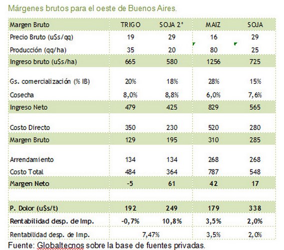 La primer conclusión sin entrar en el detalle de cada cultivo, es que cuando se analizan los números de todos los cultivos de fina de la campaña 14-15, la situación es similar, los márgenes para trigo, cebada o algún otro cultivo de invierno en muchos casos hoy, resultan al límite o negativos.