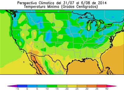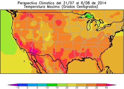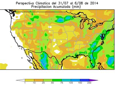 Perspectiva Agroclimática para los EE.UU. del 31 de julio al 6 de agosto de 2014: Tiempo Cálido y precipitaciones de variada intensidad, algo inferiores a lo normal