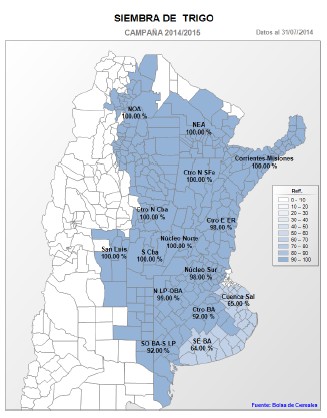 Por otro lado, un 20 % del remanente, se ubica en el Sudoeste de Buenos Aires y Sur de La Pampa, en donde las condiciones de humedad son adecuadas para continuar con las labores de implantación. El otro 4 % se concentra en Entre Ríos, Núcleo Sur y Norte de La Pampa y Oeste de Buenos Aires.
