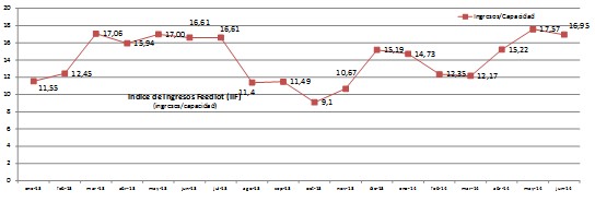 El Índice de Ingresos (IRF) representa el cociente entre los ingresos y los egresos mensuales.