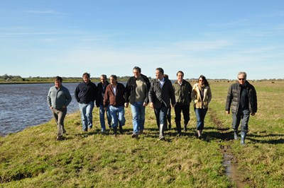 Tras dialogar en la sede de la Municipalidad local con productores de la región, el Ministro de Asuntos Agrarios dedicó varias horas a recorrer zonas rurales afectadas por las lluvias. Entre otros puntos anegados, recorrió el Canal La Picasa, Canal 9 entre Dolores y Esquina de Crotto, Canal A sobre Ruta 11 y la zona de campos lindantes al sector del aeroclub y La Caballeriza.
