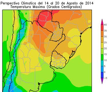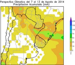 Perspectiva Agroclimática del 14 al 20 de Agosto de 2014: Ascenso térmico y precipitaciones sobre el este del área agrícola, seguidas por un fuerte descenso térmico