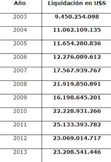 La liquidación de divisas de las empresas del sector en los últimos años fue: