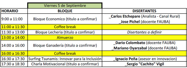 - El Desafío de Alimentar al Mundo - Conocimiento y Tecnología como Herramientas para una Producción Agricola más Eficiente - Inserción Laboral del Futuro Profesional - Compromiso social - Producir Siendo Sustentable - Alternativas "Invisibles" para el desarrollo: las ECONOMÍAS REGIONALES - Producción Ganadera Eficiente - Importancia del Periodismo y la Comunicación en el desarrollo de las economías - ACTITUDmanía, Actitud y Motivación en Equipo