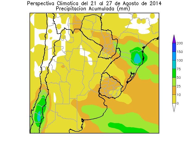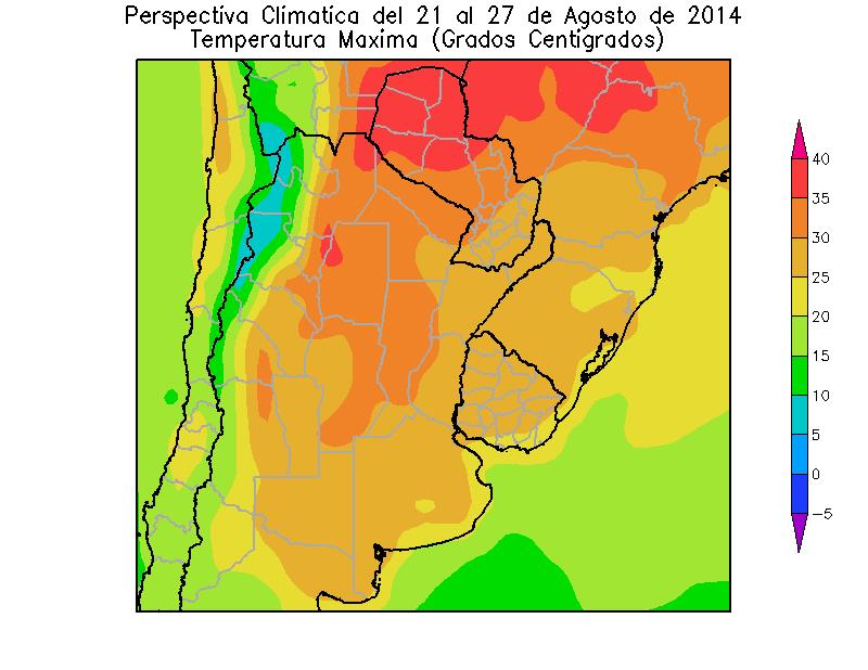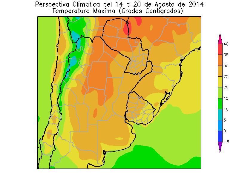 PERSPECTIVA AGROCLIMÁTICA DEL 21 AL 27 DE AGOSTO DE 2014: ASCENSO TÉRMICO Y PRECIPITACIONES SOBRE EL ESTE DEL ÁREA AGRÍCOLA, SEGUIDAS POR UN FUERTE DESCENSO TÉRMICO