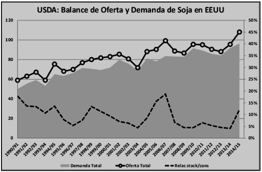 Según el USDA, la producción norteamericana 2014/15 se incrementará a un nivel récord histórico de casi 104 millones de toneladas. Sería el mayor volumen en toda su historia.