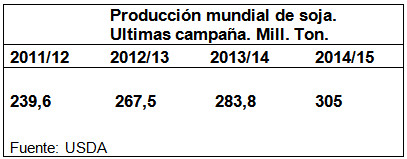 Según el USDA, la producción global de soja para la campaña 2014/15 sería del orden de 305 millones de toneladas. La cifra asusta.