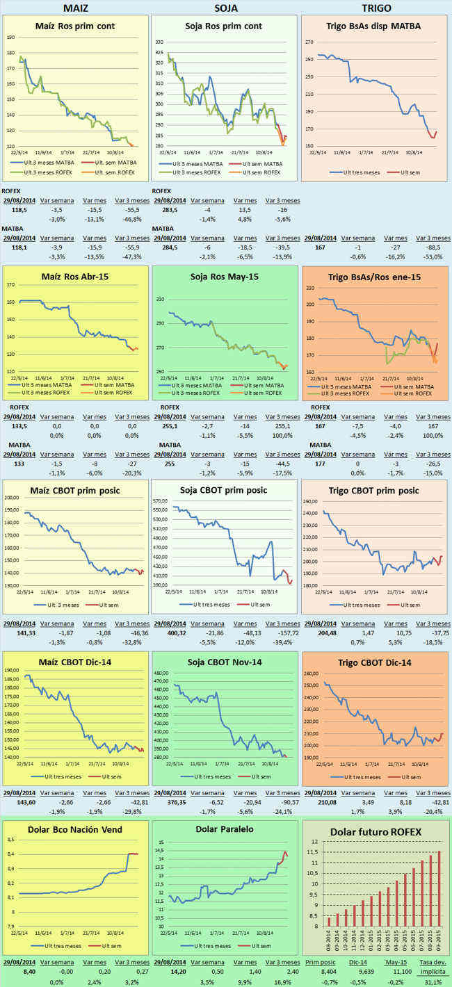 Por otro lado debería estar iniciándose el movimiento para la siembra de maíz, pero con valores para el año próximo por debajo de 130 U$S/tt, y la incertidumbre financiera y política que se atraviesa, hay poco plafón para realizar la fuerte inversión requerida para apostar por el cereal. Por ello esta semana tanto la Bolsa de Comercios de Rosario, como la de Cereales de Buenos Aires.