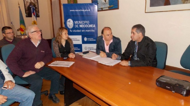 Antes de dejar la ciudad de Necochea, Topo Rodríguez recibió a autoridades municipales de Tres Arroyos quienes le entregaron un informe sobre la situación hídrica en ese distrito y le solicitaron acompañamiento crediticio para los productores agropecuarios afectados.