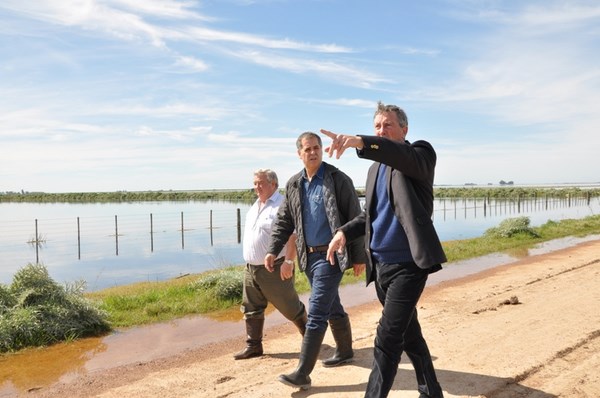 Luego de la reunión en la sede municipal, el titular de la cartera agraria provincial acompañado por el jefe comunal y ruralistas se hicieron presentes en el Paraje 80, el puente El Venado, el Canal 9 y el Paraje El Destino, donde se pudo constatar en forma directa la situación excepcional que atraviesa el distrito debido a los excesos hídricos.