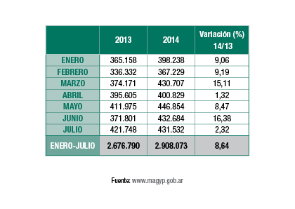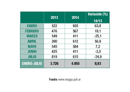 El informe realizado por la Dirección de Porcinos, Aves de Granja y No Tradicionales del Ministerio de Agricultura de la nación revela además que las exportaciones crecieron 8,83%, al pasar de 3.726 a 4.055 toneladas en los primeros siete meses del año.