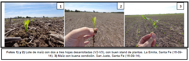En la zona Núcleo Sur comienzan a implantarse los primeros cuadros de maíz, hacia el sur de la provincia de Santa Fe (Bombal, Villa Cañás, Alcorta, Firmat), donde la humedad en los primeros centímetros del perfil es adecuada. En el norte bonaerense comenzarían con la siembra la semana entrante. Por último, en el Centro-Este de Entre Ríos debieron interrumpir las tareas de implantación por las fuertes lluvias caídas el fin de semana, las cuales provocaron excesos hídricos en varios lotes de la región.