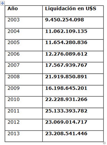 La liquidación de divisas de las empresas del sector en los últimos años fue: