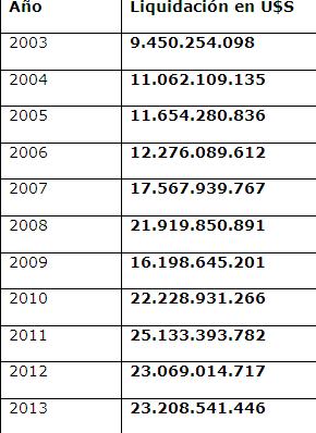 La liquidación de divisas de las empresas del sector en los últimos años fue: